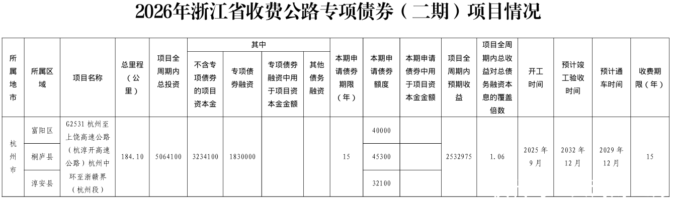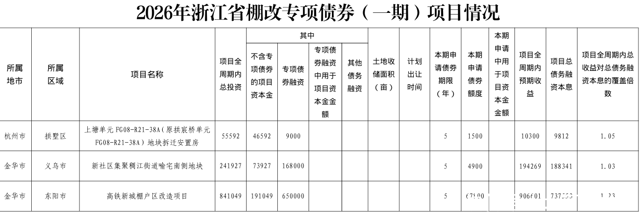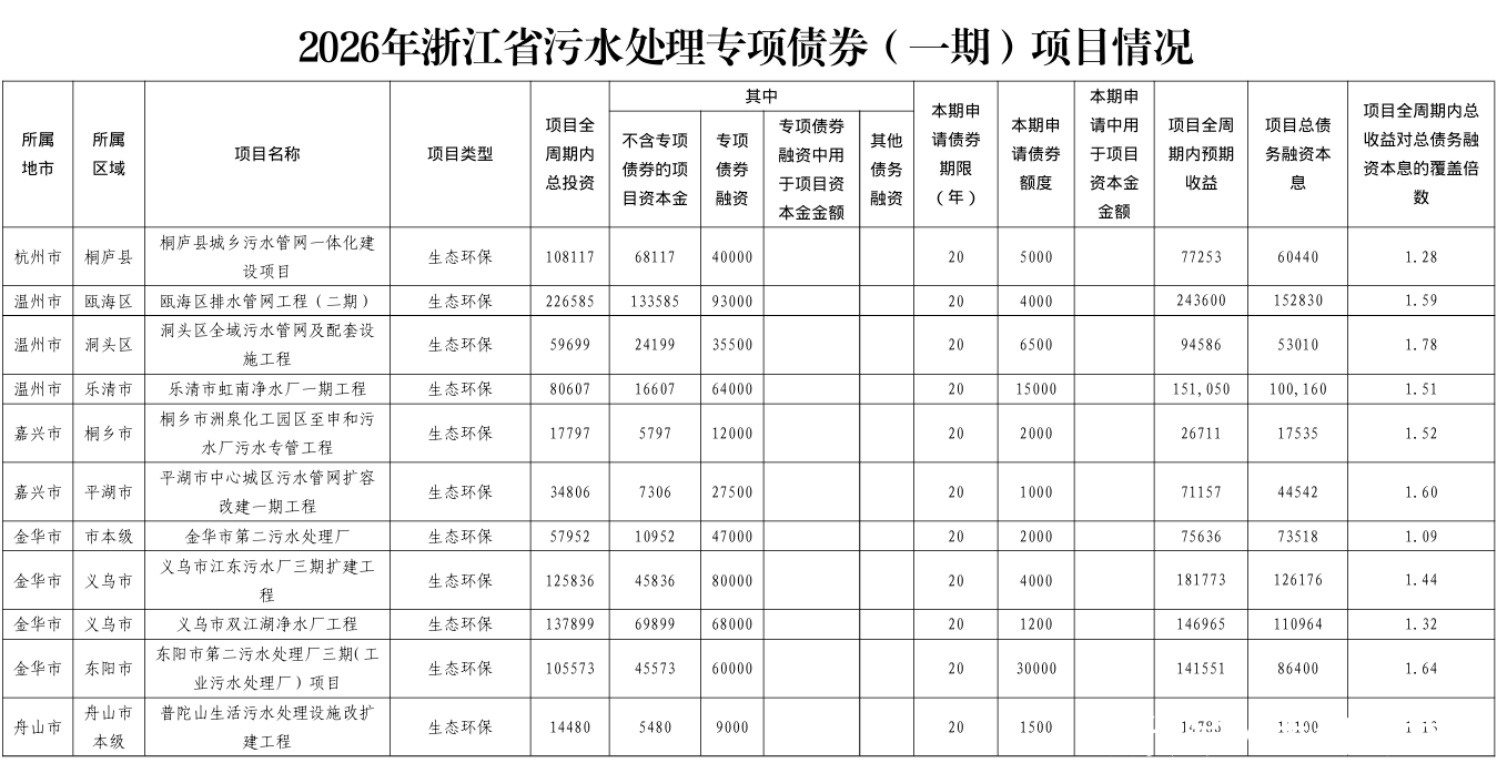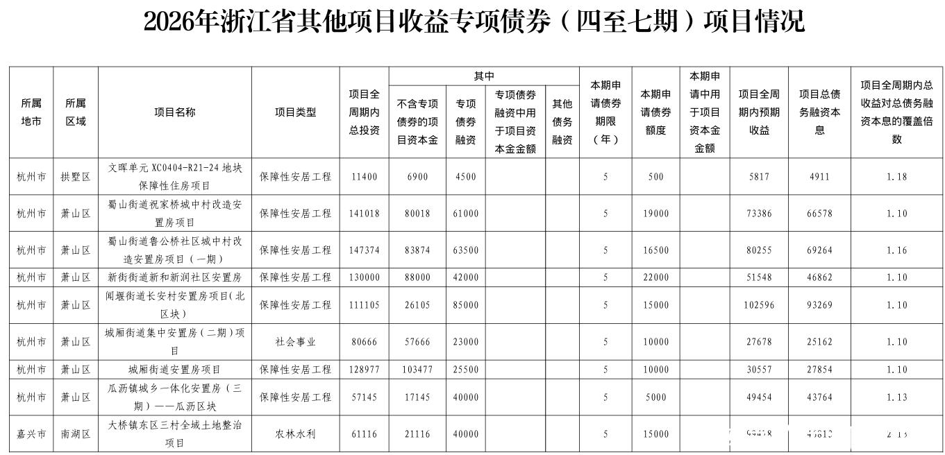 附募投项目清单:2026年浙江省政府专项债券(八至十四期)项目情况